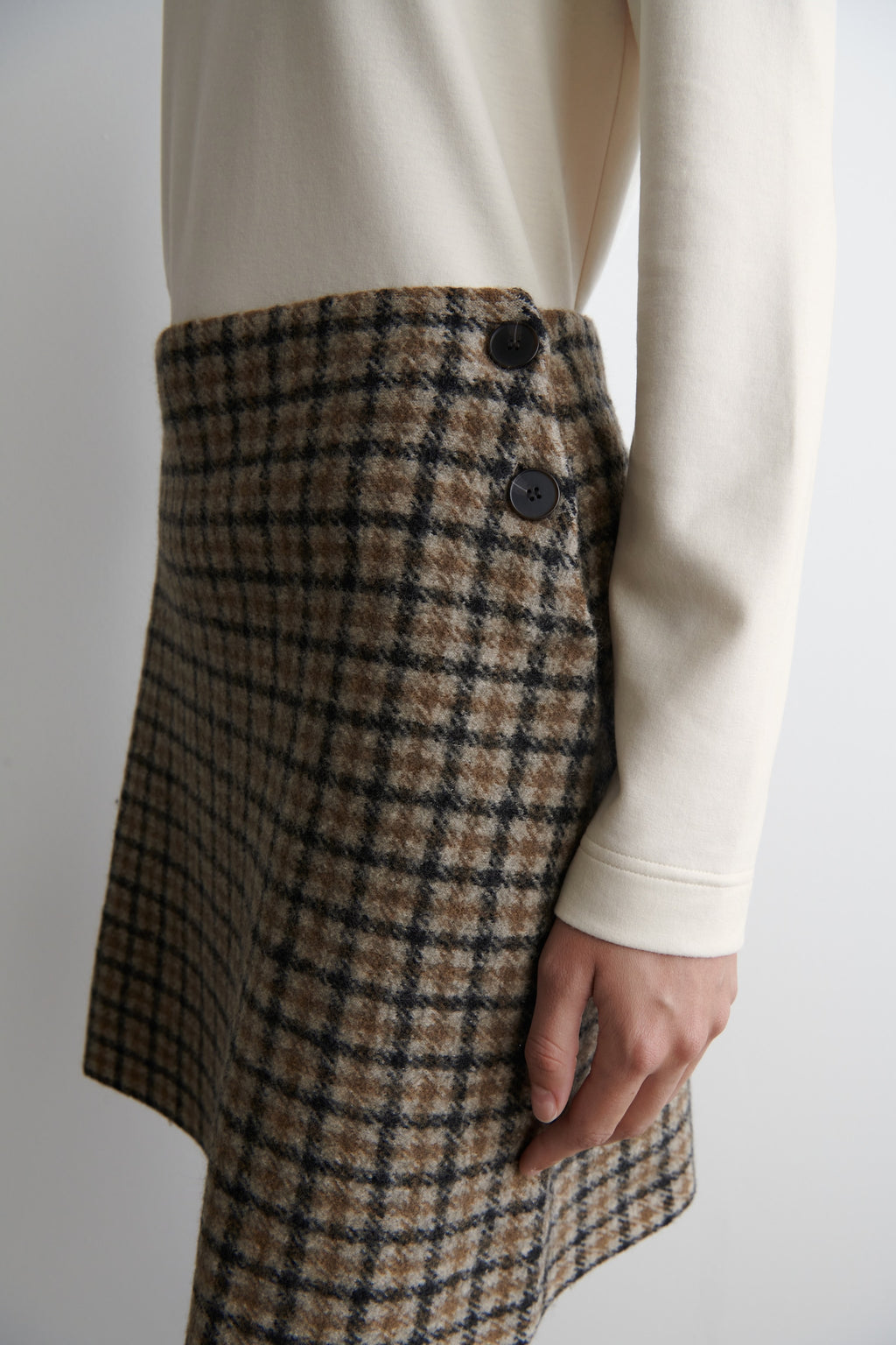 Tailored from a soft wool blend in a heritage check pattern, the Arlette Wool Check Mini Skirt balances structure with subtle femininity. Its clean, straight silhouette sits comfortably at the waist, creating a flattering and polished shape. Fully lined for ease and comfort, Arlette pairs effortlessly with knits, blouses, or the matching jacket for a coordinated, timeless look.