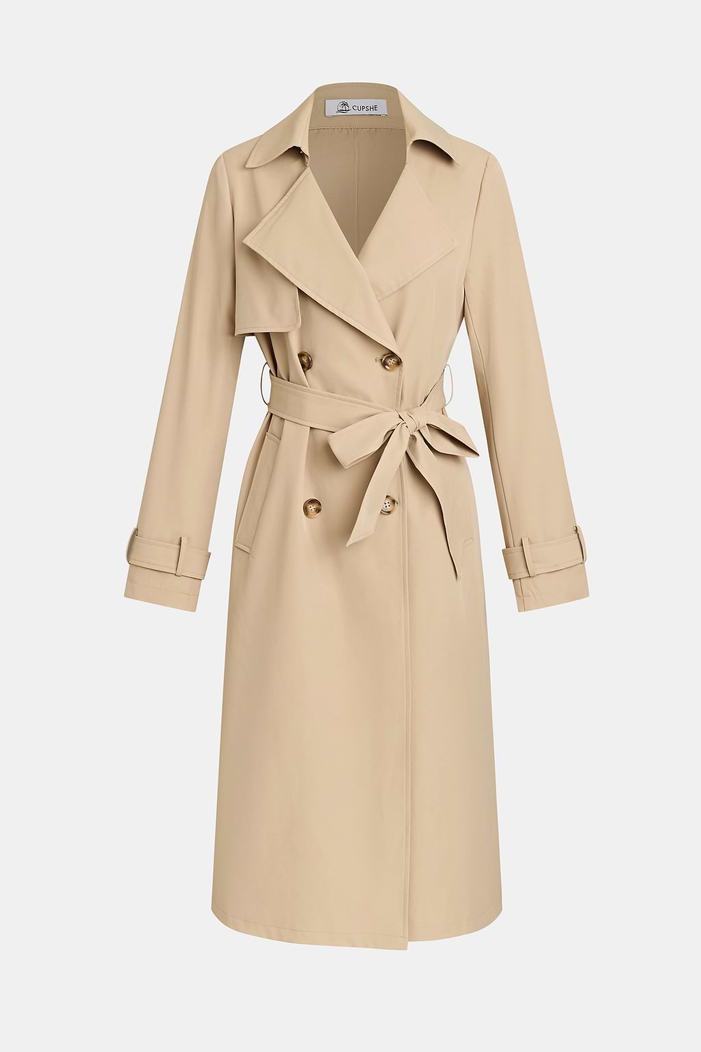 A timeless layer in soft beige, the Elise Trench Coat features clean lapels, a double-breasted front, and a sleek longline fit. Lightweight and polished, it pairs effortlessly with both casual and refined looks for everyday sophistication.