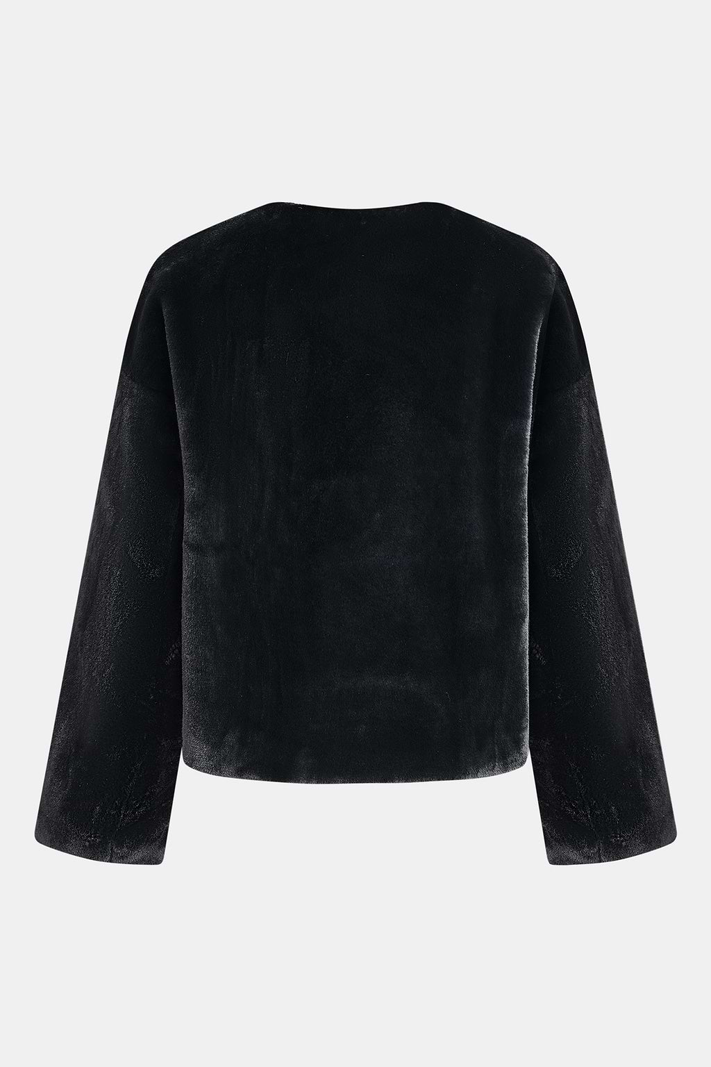 Wrapped in ultra-soft faux fur, the Ella Coat features a clean round neckline, a cropped silhouette, and a subtly structured finish. Fully lined for comfort, it layers effortlessly over both casual and evening looks, adding a touch of modern, understated glamour to every outfit.
