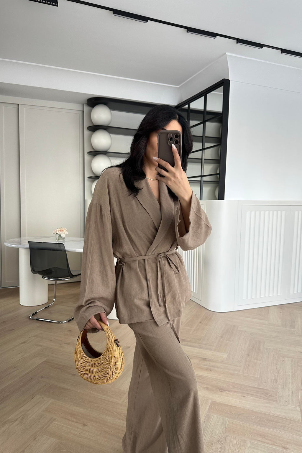 Cut from a soft linen blend, the Gracie Linen Set offers an easy, relaxed silhouette. The button shirt drapes lightly over the frame, while the wide-leg trousers fall with a natural, fluid ease. Designed for everyday wear with a refined, understated finish.