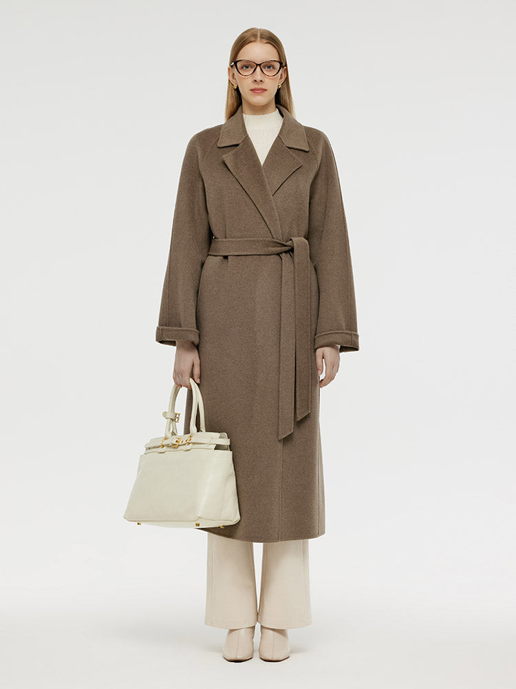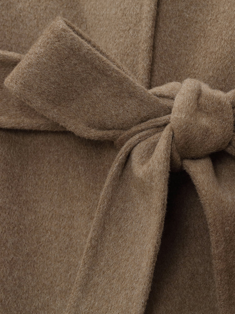 A timeless wool-blend wrap coat designed with clean lines, wide lapels, and an elegant self-tie belt. Its long, fluid silhouette brings effortless sophistication and warmth—perfect for elevating everyday layering with minimal, modern polish.