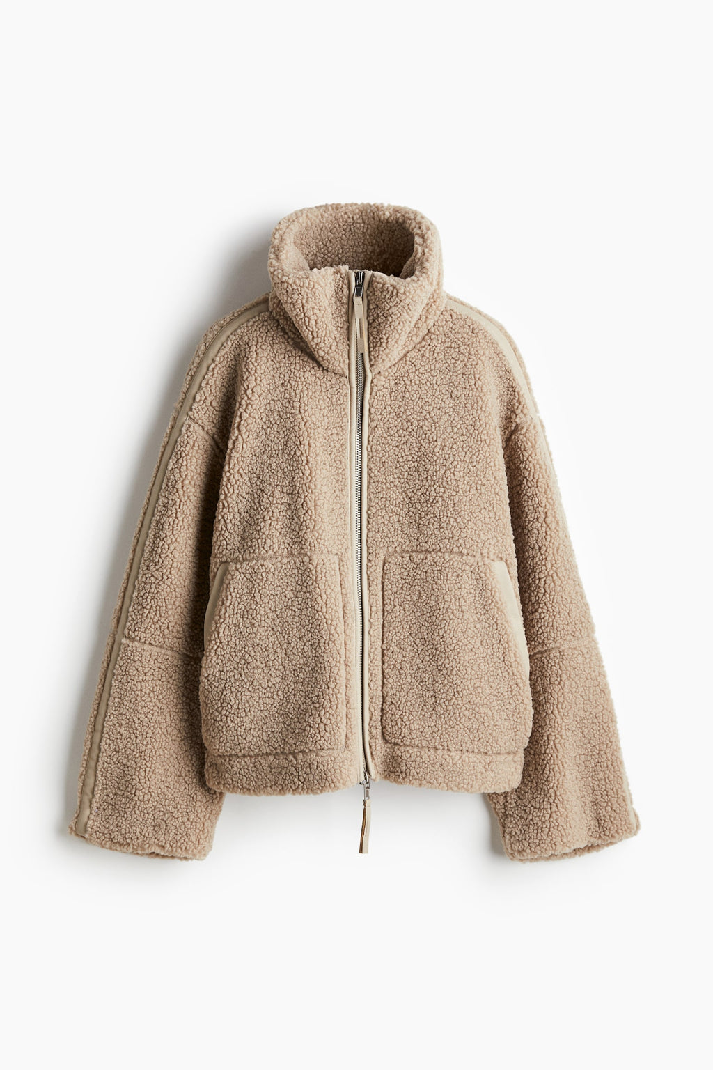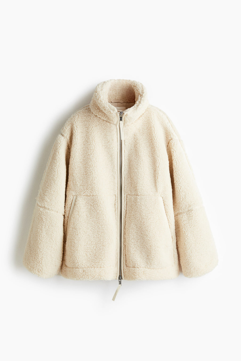 Cut from a soft, plush fleece, the Teddy Jacket offers a relaxed layer of warmth for everyday wear. The silhouette is easy and slightly oversized, with a high collar and zip closure for a clean finish. Side pockets add practicality, while the textured fabric brings a cozy, effortless feel to casual styling.