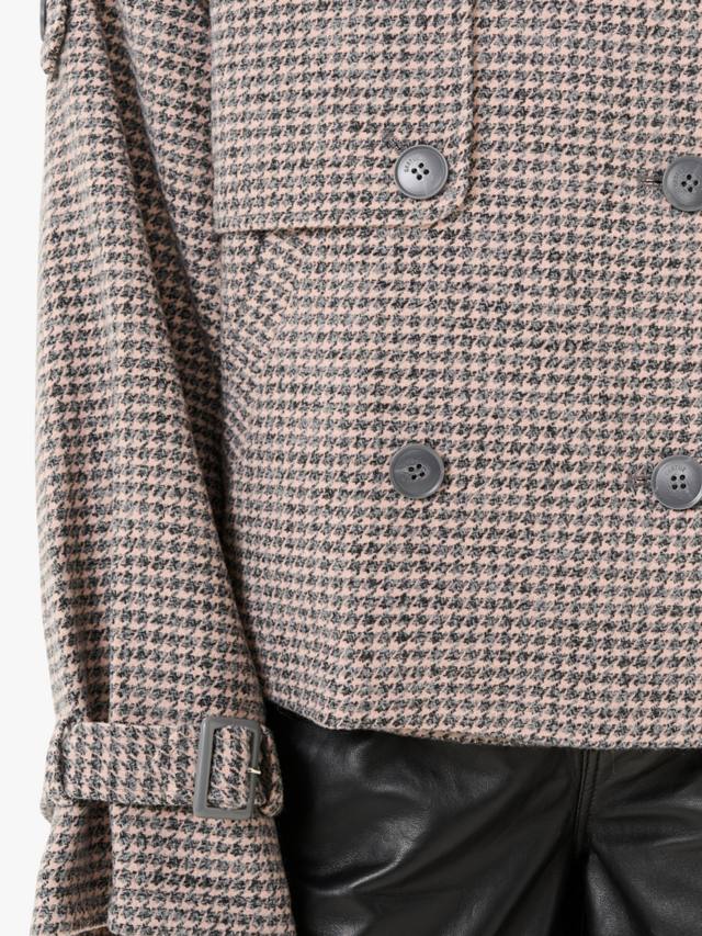 The Waverly Wool Coat blends heritage tailoring with a modern silhouette. Designed in a cropped cut with a high belted collar, double-breasted front, and adjustable cuff straps, it delivers structure with ease.